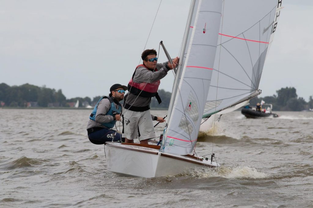 Der erste Wettfahrtag begann mit strahlendem Sonnenschein und 12 bis 15 Knoten Wind. Der Dümmersee führt im Sommer vergleichsweise wenig Wasser, sodass es stellenweise notwendig war, das Schwert zu liften. Gesegelt wurde an allen Tagen das olympische Dreieck mit zwei Runden, geplant waren jeweils drei Wettfahrten pro Tag.